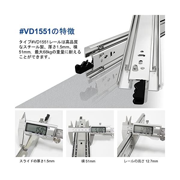 VADANIA 1000mm 重量用スライドレール ロック付き #VD1551 Heavy Duty引き出しスライド 3段引 フルエクステンショ