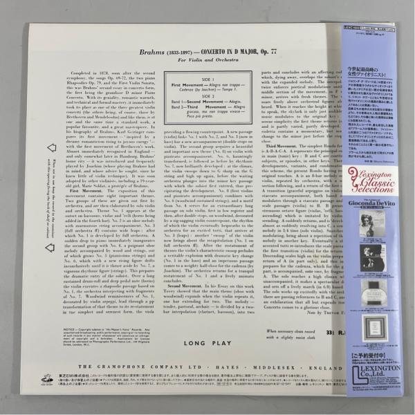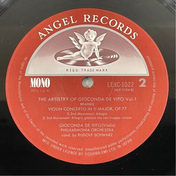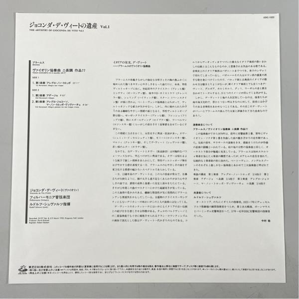 東芝EMI 帯あり LEXC1022 ジョコンダ・デ・ヴィートの遺産 ブラームス ヴァイオリン協奏曲 洗浄済 LP