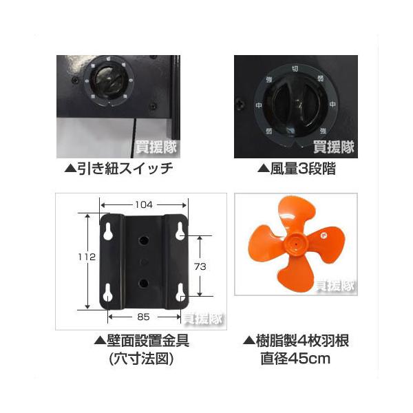 (P5倍)壁掛型 工場扇 45cm タイカツ 扇風機 壁掛け 強力 強風 風量3段階 HX-105