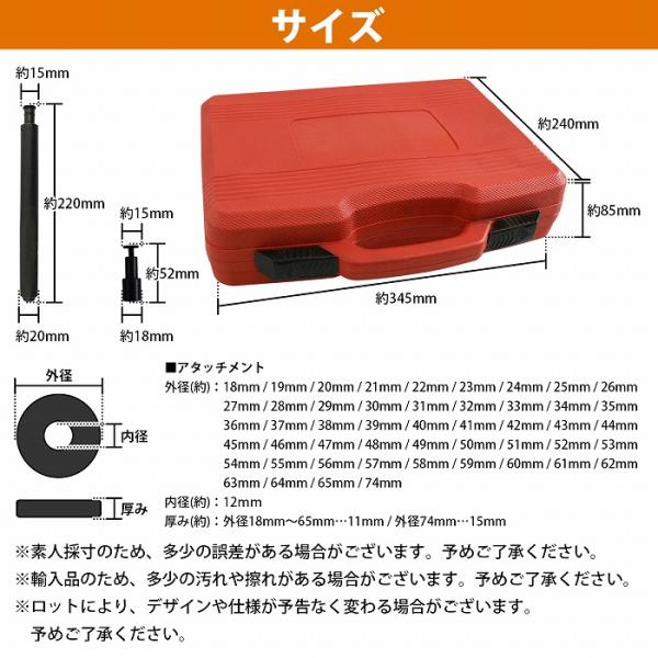 油圧プレス用 リングアタッチメント 49種セット ベアリング ブッシュ オイルシール 圧入 取り外し 18mm-74mm 工具 ケース付