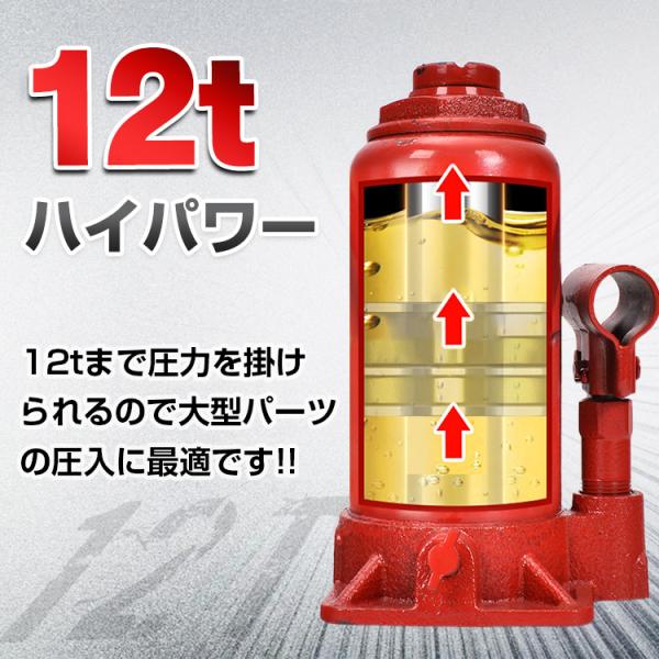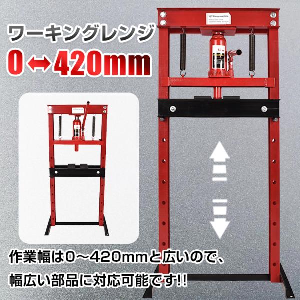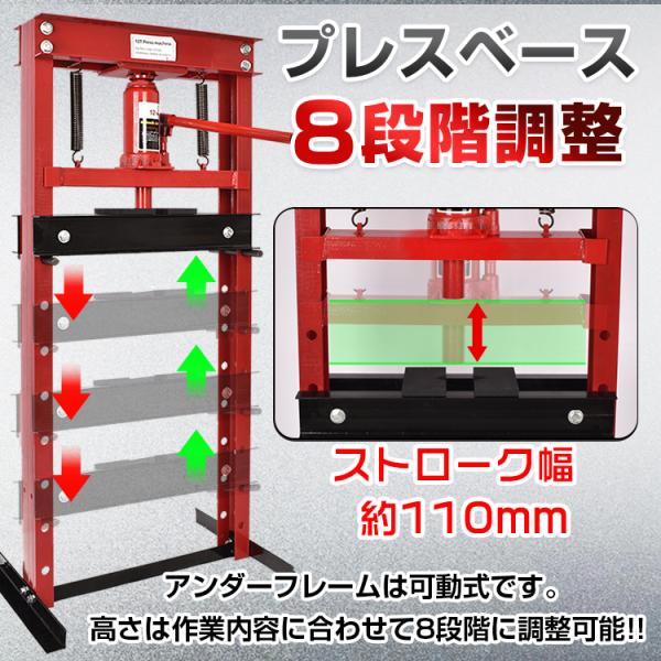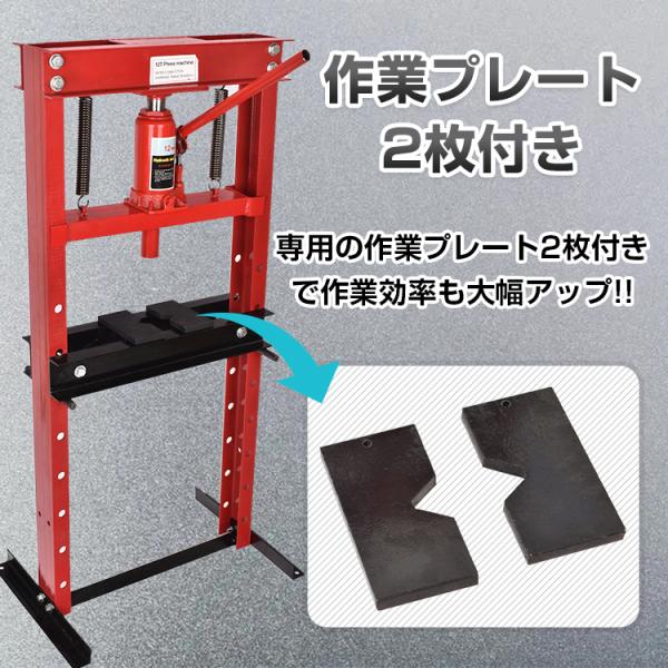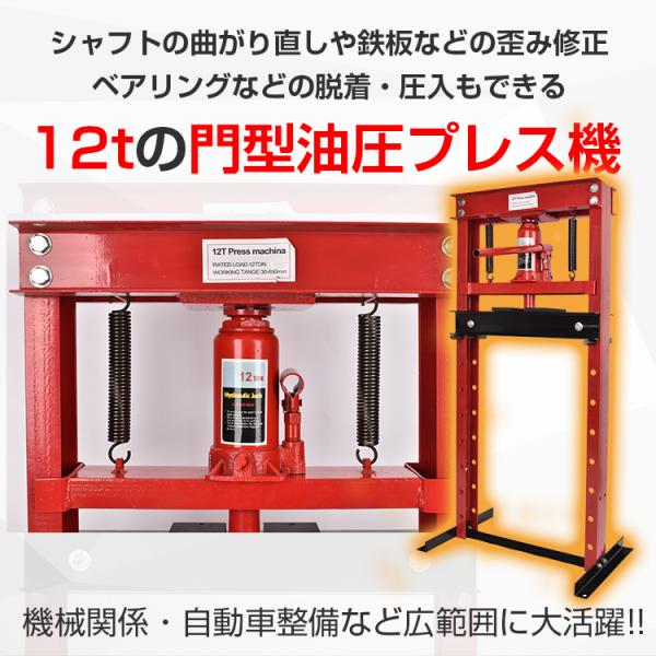 油圧プレス 12t 12トン 門型 門型プレス機 ベアリング シャフト 圧入器 圧入 整備 脱着 自動車 バイク オートバイ 鉄板 メンテナンス 赤 ee334
