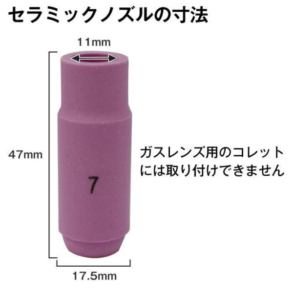 セラミック ノズル 5個 セット TIG 溶接機 #7 10N47 互換 溶接 先端 スペア トーチ No7 内径11.1mm 7番 消耗品 DIY