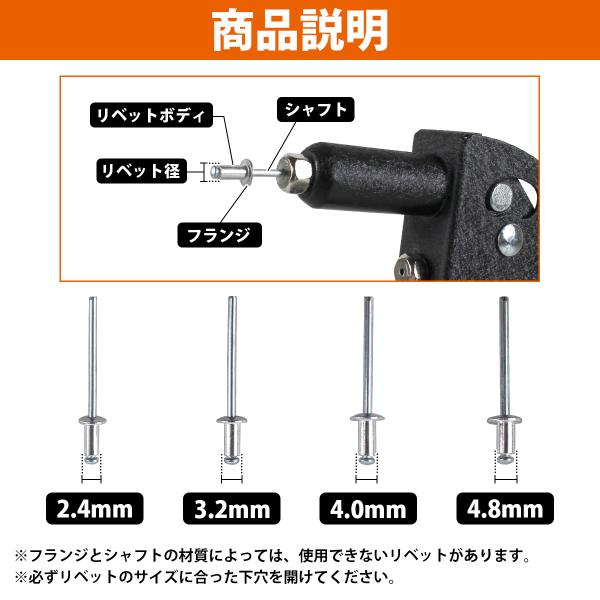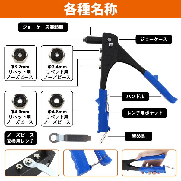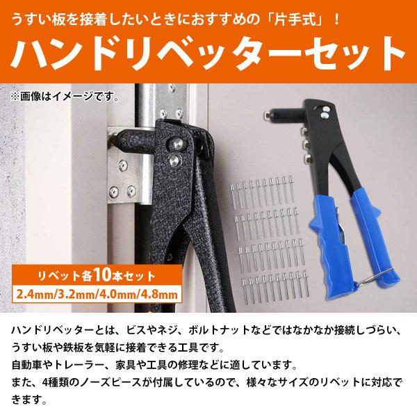 ハンドリベッター リベット 40個セット 4種 各10個付き 手動 ブラインドリベット ハンド ナッター リベッター DIY 工具 40本