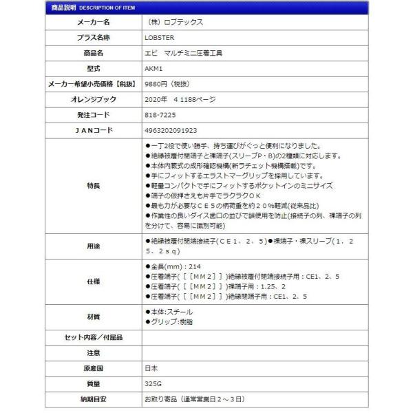 ロブテックス マルチミニ圧着工具 AKM1 手作業工具 研削用品 フラックス 使いやすい 圧着工具 簡単作業