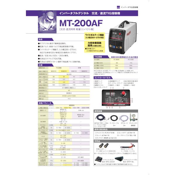 マイト工業 交流/直流 TIG溶接機 MT-200AF 100V/200V兼用 ダブルデジタル表示 ●YA509