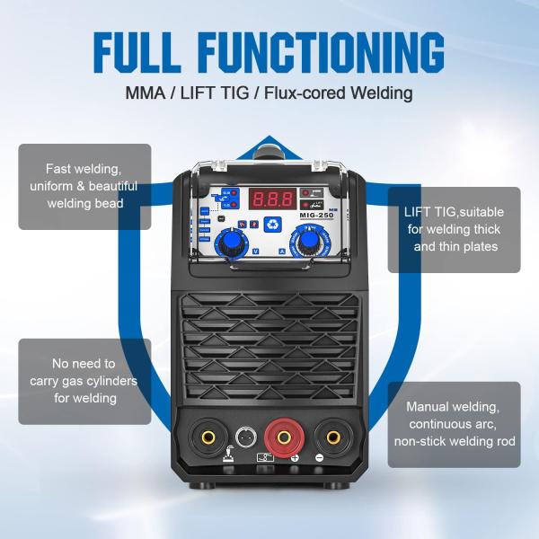 ANDELI 半自動溶接機 120AノンガスMIG/アーク溶接/lift TIG 100V/200V兼用 インバーター直流溶接機 MIG溶接 半自動 日本語取説書 MIG-250ME