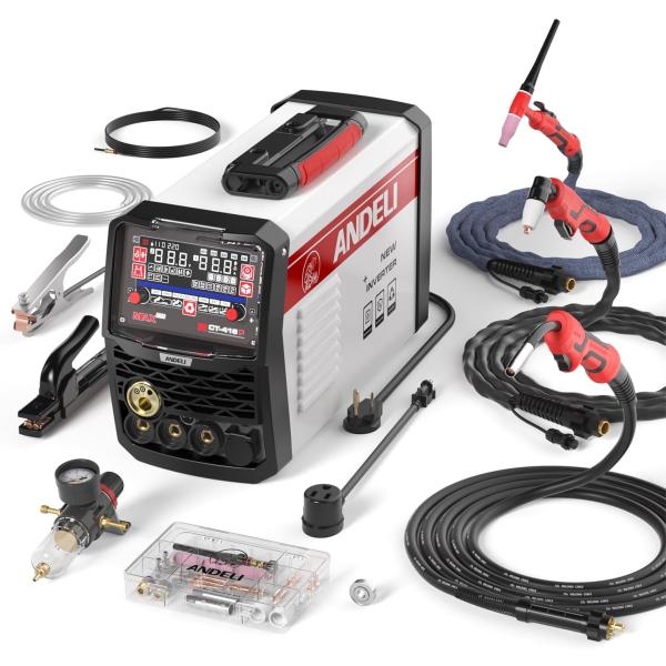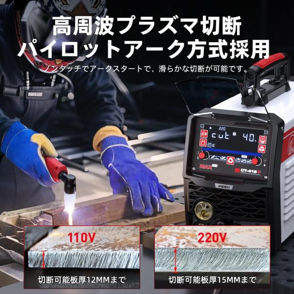 ANDELI 半自動溶接機 アルミ溶接可能 100V/200V兼用 MIG/手棒溶接/HF TIG溶接/プラズマ切断 ガス&ノンガス半自動溶接 5 in 1多機能MIG溶接機 MCT-416P