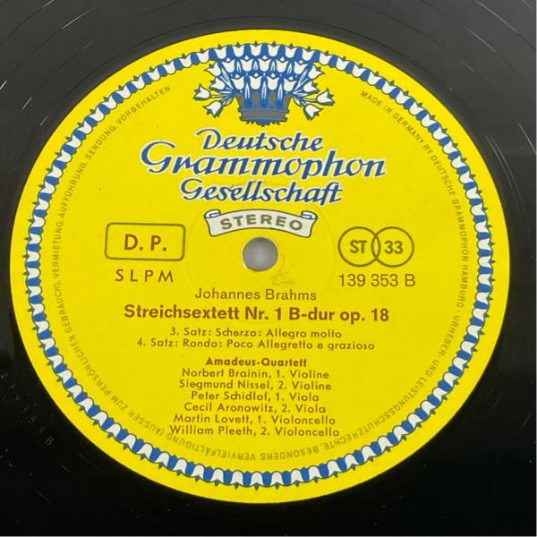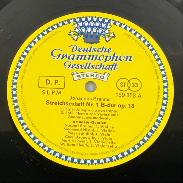 独DGG 139 353SLPM ブラームス 弦楽六重奏曲第1番 アマデウスSQ他 洗浄済 LP