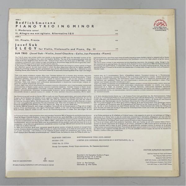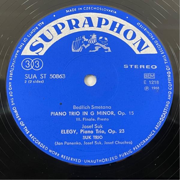 チェコSUPRAPHON SUA ST 50863 スーク・トリオ スメタナ ピアノ三重奏曲 スーク ピアノ三重奏の為のエレジー 洗浄済 LP