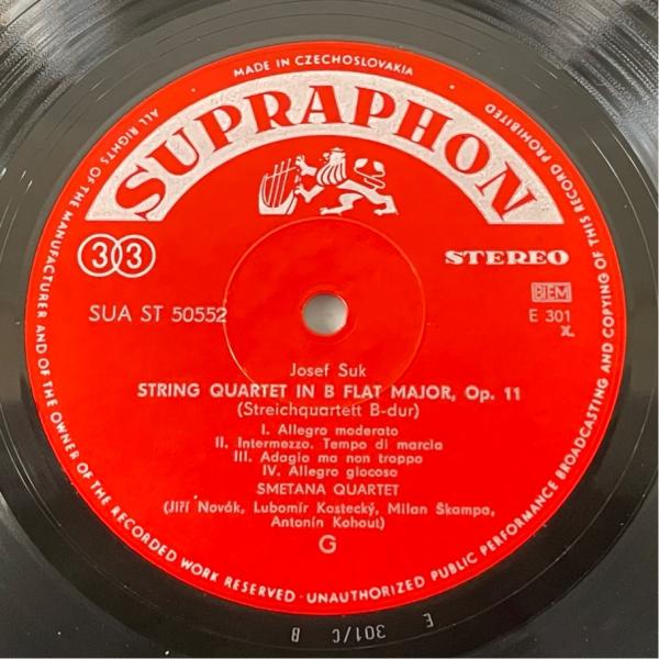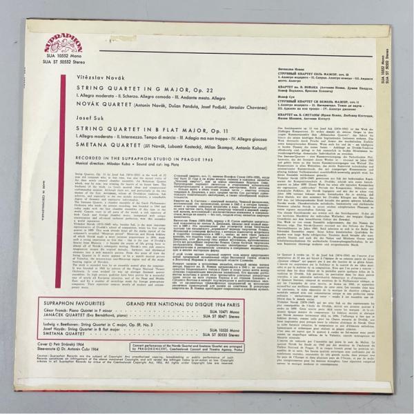 チェコSUPRAPHON SUA ST 50552 ノヴァーク四重奏団 ノヴァーク 弦楽四重奏曲 op.22 スーク 同 op.11 洗浄済 LP
