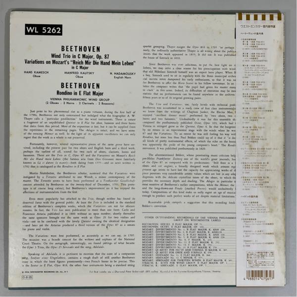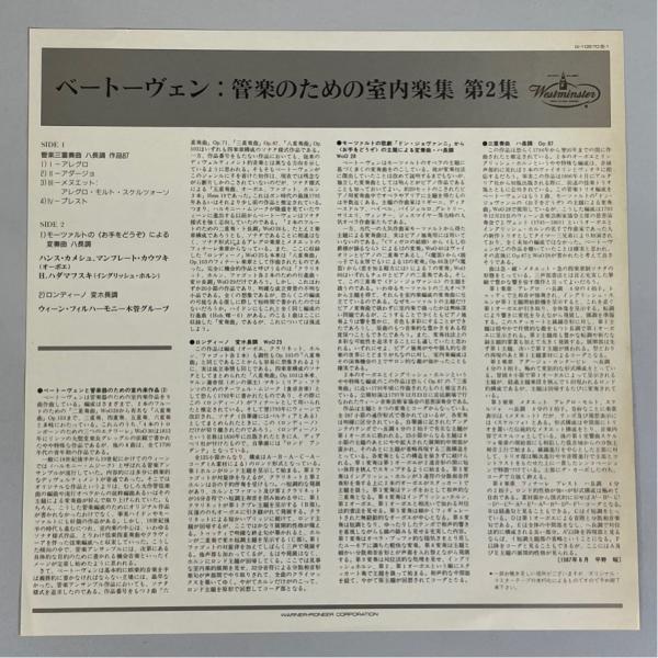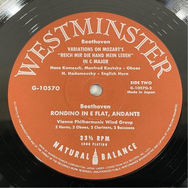 Westminster 国内盤 G-10570 ベートーヴェン 管楽のための室内楽集 第2集 ウィーン・フィル木管グループ 洗浄済 LP
