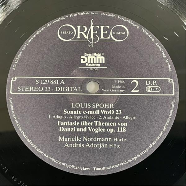 西独ORFEO S129881 マリエル・ノードマン アンドラーシュ・アドリアン ルイ・シュポーア ハープとフルートのための作品 洗浄済 LP