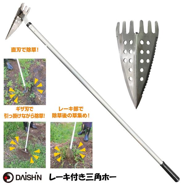 三角ホー レーキ付 アルミ柄 ステンレス 大進 立ったまま 雑 草とり道具 草刈りレーキ 草取り 道具 立ったま ま 草取り器 庭 アルミ 女性