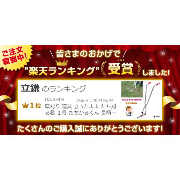 草刈り 道具 立ったまま たち刈る君 1号 たちかるくん 長柄 立ち鎌 草取り道具 軽量 草むしり 手動 立ち鎌 除草 雑草 とり 草刈り 安全 鎌 ハサミ 大進