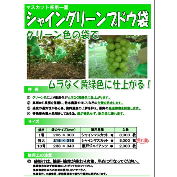 【1袋のみメール便】緑ぶどう専用 果樹袋 シャイングリーン 特大 218×315mm 100枚