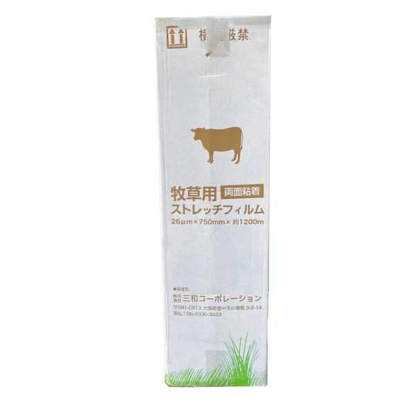 牧草用ストレッチフィルム 厚み26μm x 幅750mm x 長さ1200m 1本入 サイレージフィルム 両面粘着 ロールベーラー 牧草梱包機用 牧草ラップフィルム