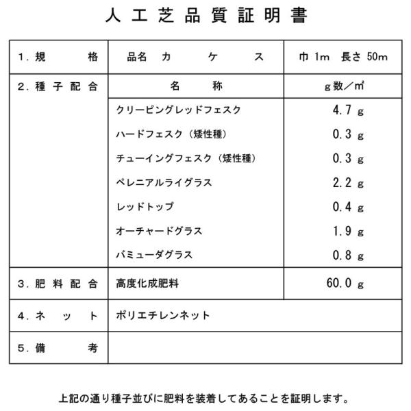 植生シート カケス 盛土用張芝 肥料 保水剤入 1×50m 植生 人工芝 種子 入 シート マット のり面 法面 に 小泉製麻 個人宅配送不可 代引不可