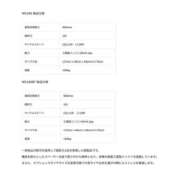 WAKO 和光商事 和光 薪割機 国産薪割機 エンジン式 最長処理能力500mm 破砕力10t WS-190