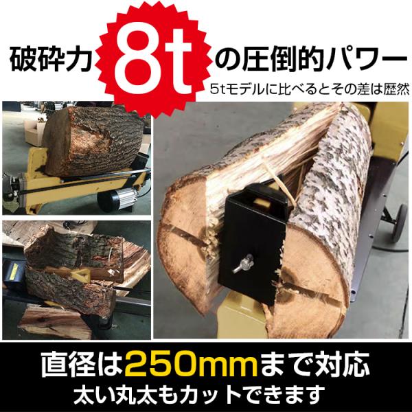 薪割り機 8t 電動 油圧式 四分割 カッター 直径250mmまで対応 キャスター 強力 小型 家庭用 ログ スプリッター 薪ストーブ 暖炉 焚き火 od469