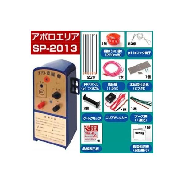 電気柵セット 電気柵本体 アポロ エリアシステム SP-2013 資材付きセット 100m X 2段張り 電池別売 通販限定品 家庭菜園 FRP支柱 イノシシ 猪 電柵