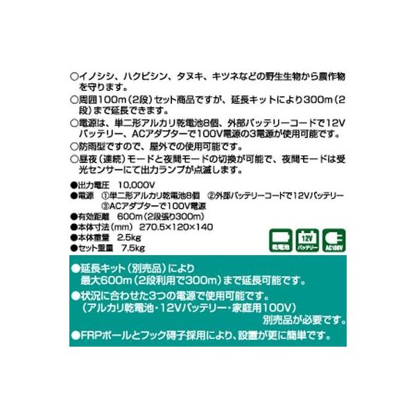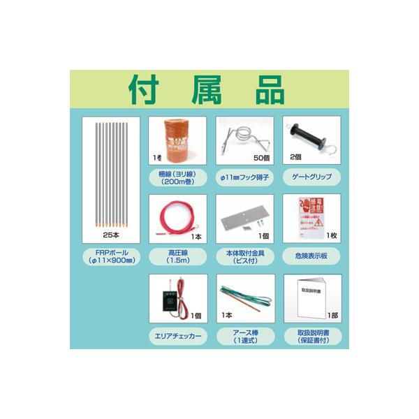 電気柵セット 電気柵本体 アポロ エリアシステム SP-2013 資材付きセット 100m X 2段張り 電池別売 通販限定品 家庭菜園 FRP支柱 イノシシ 猪 電柵