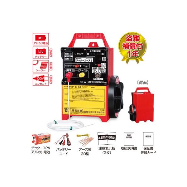 電気柵 本体 電気柵 末松電子 ゲッターエース3 ACE12-3 (ゲッターアルカリ電池12V内蔵) 電柵