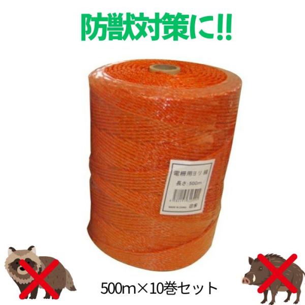 電柵ロープ 500m×10個 オレンジ 防獣用電気柵 シンセイ【取寄商品】