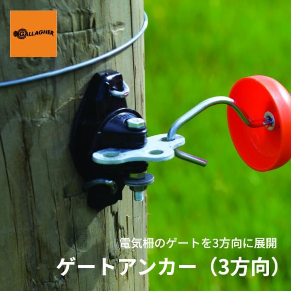 【電気柵 ゲート】ゲートアンカー(3方向) | ゲート金具 放牧地 パドック 分割用 木柱取付 スチール製 耐久型