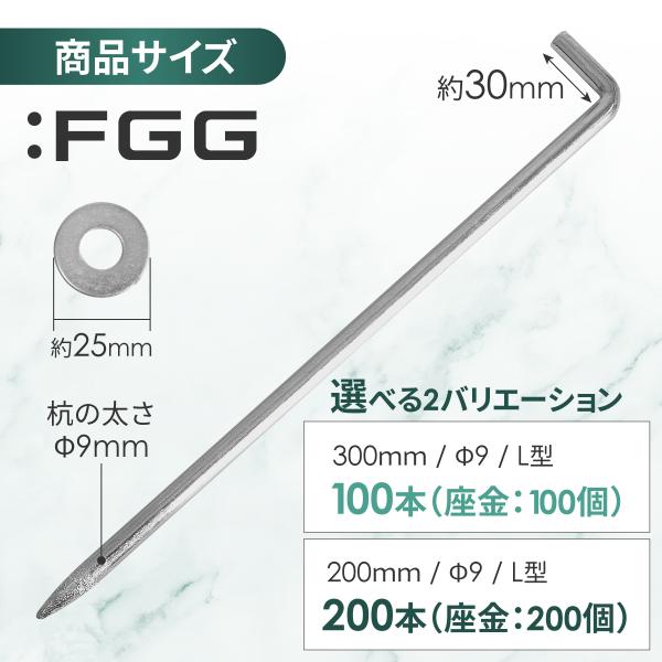 :FGG 防草シート ピン 固定ピン 固定杭 座金付き テープ 大容量 耐久性 安定感 硬い地面 抜けにくい 雑草対策 農業 紫外線対策 L型(200mm,Φ9,200本)