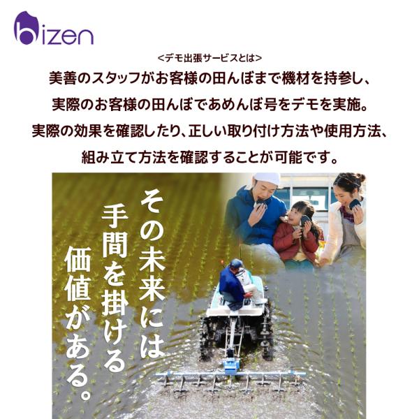 美善 デモ・立会サービス 水田用株間除草機 あめんぼ号導入検討のお客様へ 美善出張サービス ※エリアごとに出張料が変わります。ご注文後の日程調整