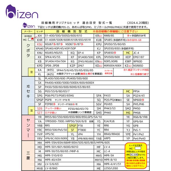 美善 <オプション部品>ヒッチ各種 クボタ用ヒッチ