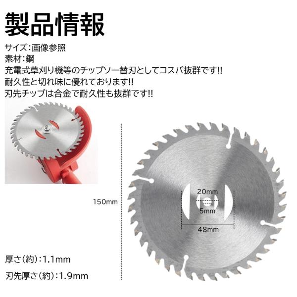6インチ チップソー 3枚 充電式 草刈機 取付穴径5mm 直径150mm 刈刃 電動草刈り機 コードレス 草刈機 交換用刃 草刈り払い機 替え刃 替刃