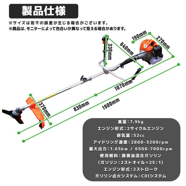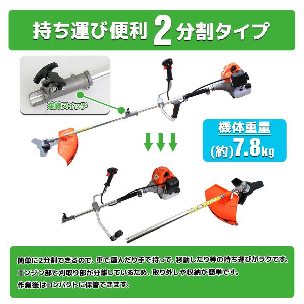 実用な5種類アタッチメント付【2台セット】52cc強力草刈機 エンジン式草刈り機 刈払機 芝刈り機 2分割