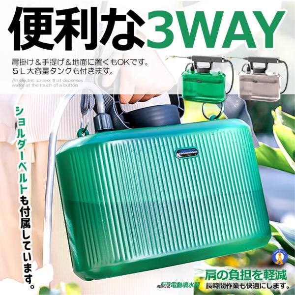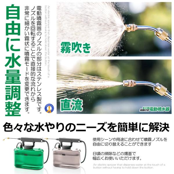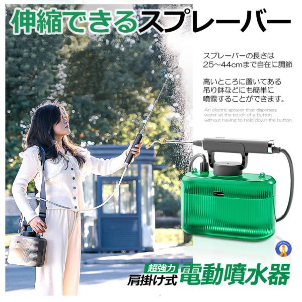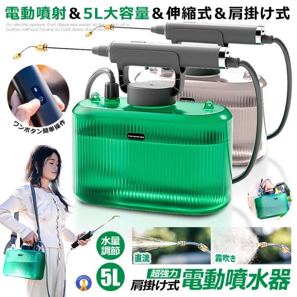 噴霧器 電動 充電式 電動噴霧器 5L 肩掛け式 バッテリー式 USB充電 小型 軽量 静音 ワンタッチ 延長ノズル GADENSUPU