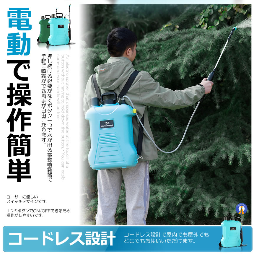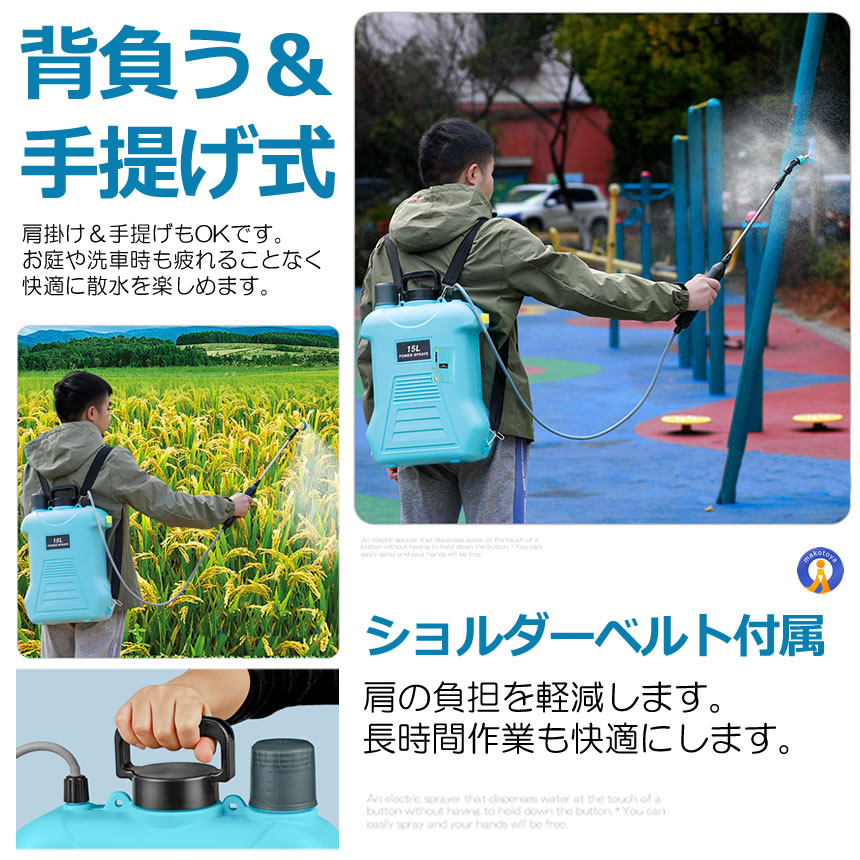 2個セット 噴霧器 電動 15L 大容量 充電式 電動 88cm 伸縮式 噴霧器 肩掛け式 バッテリー式 USB充電 MIZUPAWA