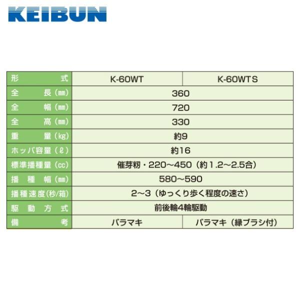 啓文社製作所 KEIBUN 水稲用播種機 (手動) K-60WTS 4輪駆動タイプ