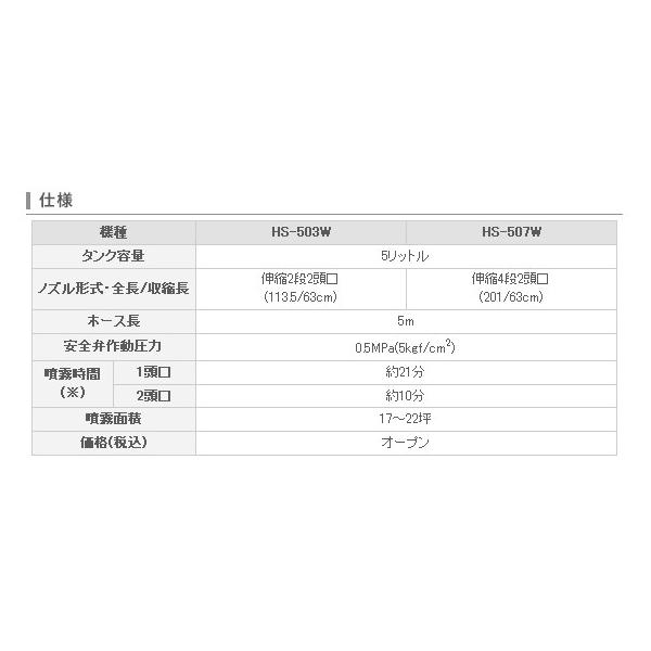 工進 コーシン 蓄圧式噴霧器 [ミスターオートHSシリーズ] 消毒用 5Lタンク(2段2頭口ノズル付) Wピストンタイプ [HS-503W]