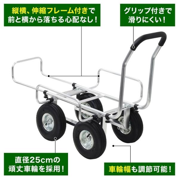 ハウスカー 農業 手押し車 アルミハウスカー 台車 コンテナ台車 農作業 アルミ 伸縮 収穫用台車 耐荷重80kg コンテナ 4輪車 運搬車 農業用運搬車 アルミカート