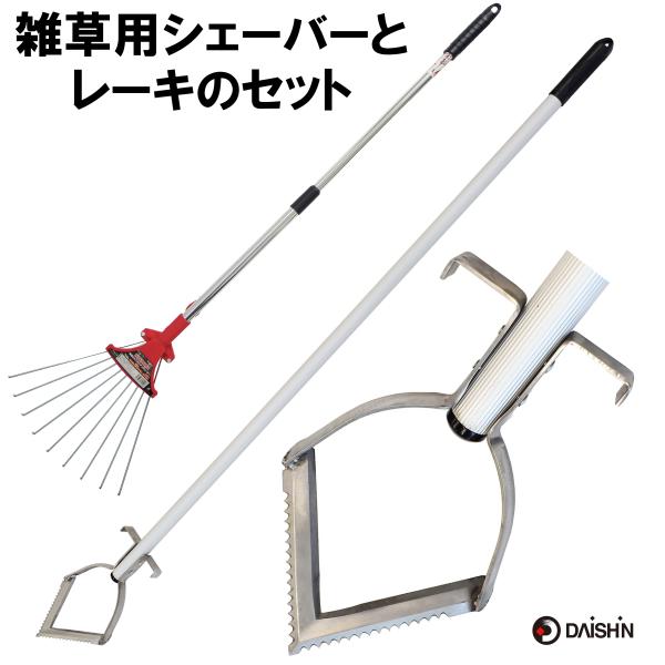 大進 雑草削る君 シェーバー と レーキのセット 草取り 道具 立ったまま 草刈りレーキ アルミ 庭 の クサカリ 草刈り 際刈り 軽量 草取り器 長柄 お手軽 草削り