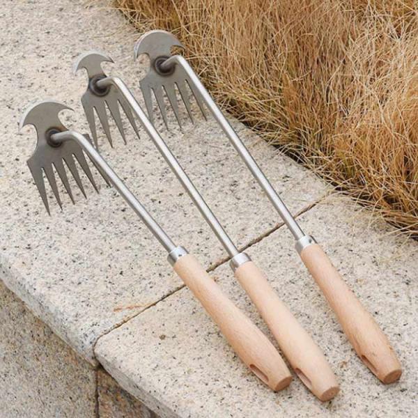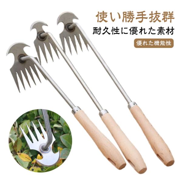 雑草取り器具 草むしり 草取り 雑草抜き 草取り道具 ステンレス製 根こそぎ 片手鍬 菜園鍬 草削鍬 木製ハンドル 4本爪 5本爪 6本爪 雑草ブラシ