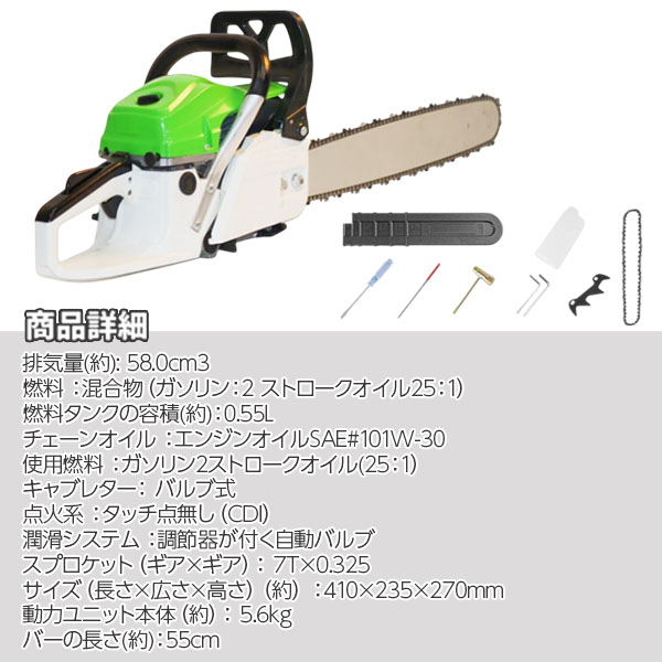 エンジン チェーンソー ソーチェーン 58cc 最新型 本体 エンジンオイル 混合燃料 5800 ハンディ ワイヤレス 持ち運び プロ仕様 工具 作業用 庭木 キャンプ