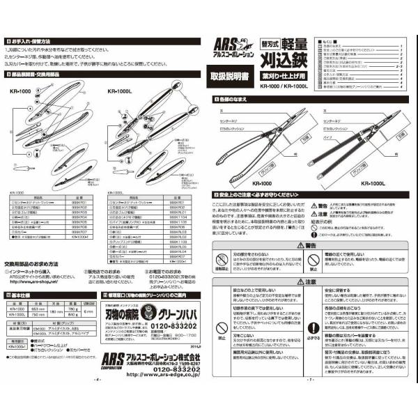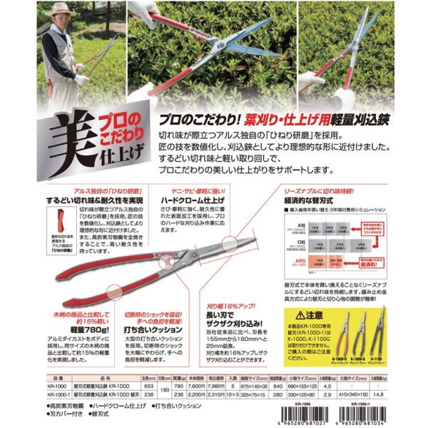 刈り込みばさみ アルス替刃式軽量刈込鋏 KR-1000 刈込鋏 枝切りバサミ 刈り込み鋏 刈り込みハサミ 枝切りバサミ