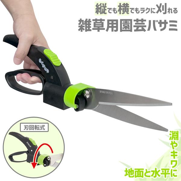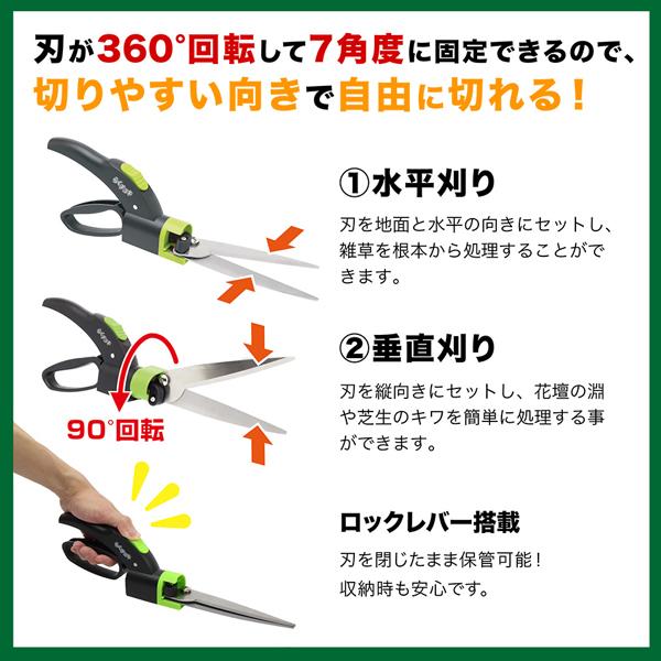 草刈り はさみ 回転刃 角度7方向 雑草 キワ 壁 片手 軽量 芝生鋏 芝刈り ハサミ 園芸ばさみ 剪定鋏 園芸 庭 植木 ガーデニング 送料無料- 60N◇ 雑草処理名人