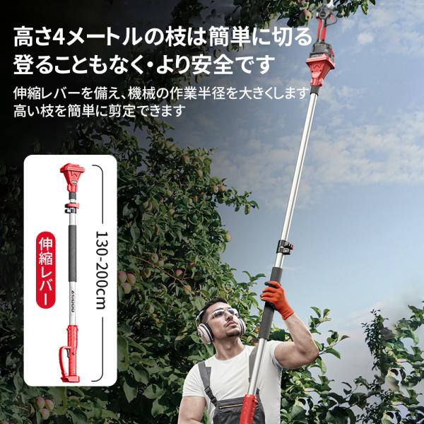 【正規品】 剪定ばさみ 電動 高枝切りバサミ 充電式 切断直径50mm 200cm延長ポール 電動ハサミ ブラシレスモーター 枝切り 電池残量 軽量 果樹 庭 園芸用 家庭用