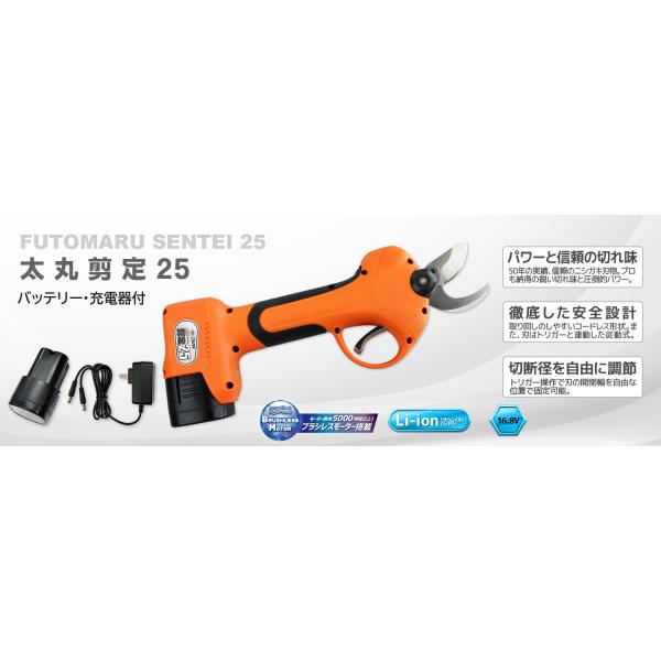 ニシガキ 充電式剪定鋏 太丸剪定25 25mm (バッテリ2個、充電器、ケース付) N-770 (北海道・沖縄・離島のみ送料必要)