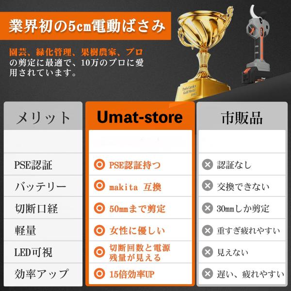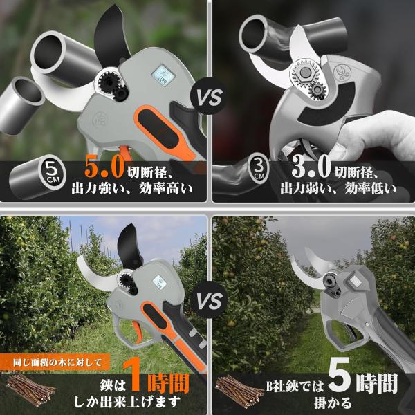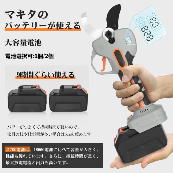 電動バサミ 業界初の5cm電動剪定ばさみ 強いパワー 25Vコードレス充電式剪定バサミ 2段階開き角度調節可 マキタ使える 大容量バッテリー付き 切断回数と残量表示