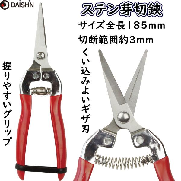 大進 ステンレス ギザ刃 芽切鋏 185mm 収穫 芽切 ハサミ はさみ 剪定 エダ 木 生花 ガーデン 庭木 畑 剪定鋏 剪定ばさみ 軽量 女性 ラクラク 楽々 軽い PRO用