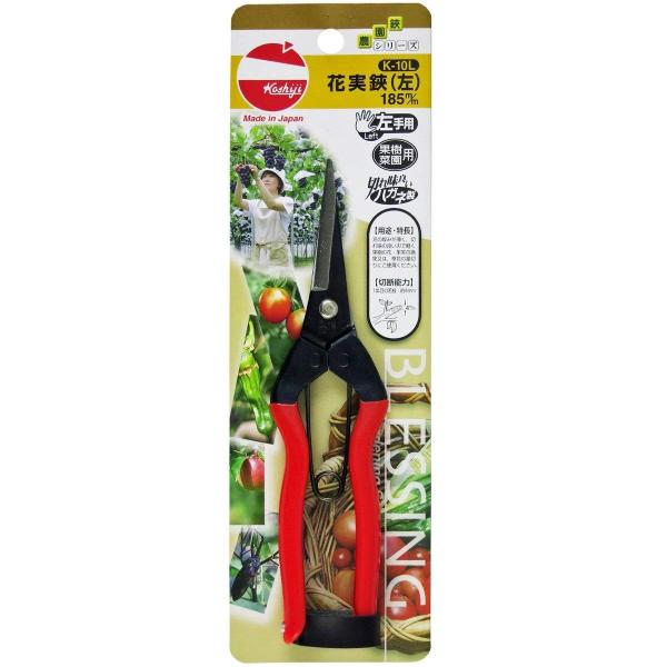 はさみ ハサミ 鋏 果実 芽摘み作業 収穫 花 お手入れ 果樹 摘果 草花 茎切り 菜園用 日本 道具 花実鋏左 K-10L185ミリ 左手用 越路 4991579906106
