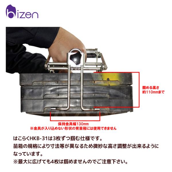 美善 はこらく 水稲育苗マット箱掴み機 HKB-31 苗箱3枚ずつ掴む仕様 汚れないはさまらない・苗箱運搬に最適