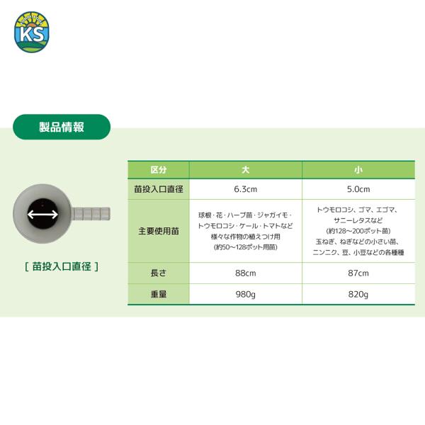 KSFARM ハンドプランター 移植器 苗投入口径63mm 長さ88cm Lサイズ 苗植 軽量980g 東京戸張 HPL